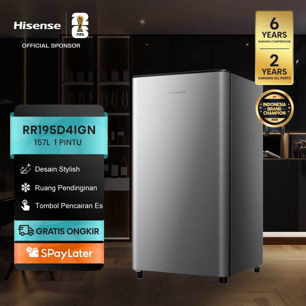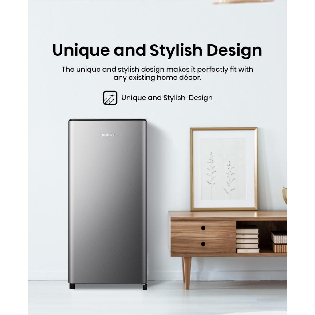 Hisense Kulkas RR195D4IGN Refrigerator Mini Bar Kapasitas 157L 1 Warna Silver Pintu Desain Unik dan Bergaya Ruang Pendin