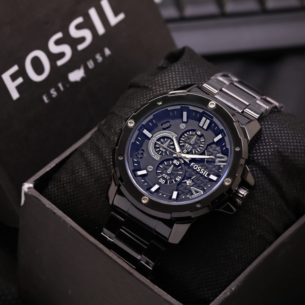 Jam Tangan Pria 1605T Tanggal Aktif Tali Rantai Free Box & Baterai Cadangan