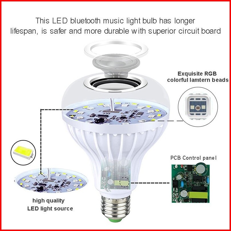 Speaker Bluetooth Wireless Lampu Led Rgbw E27 12w Rgbw E27 Smart Led Music Light Bulb