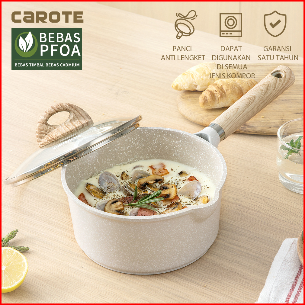 Carote Panci Susu Satuan 16 18 Cm Lapisan Granit Anti Lengket Dilengkapi Dengan Tutup Kaca Cocok Untuk Semua Jenis Kompo