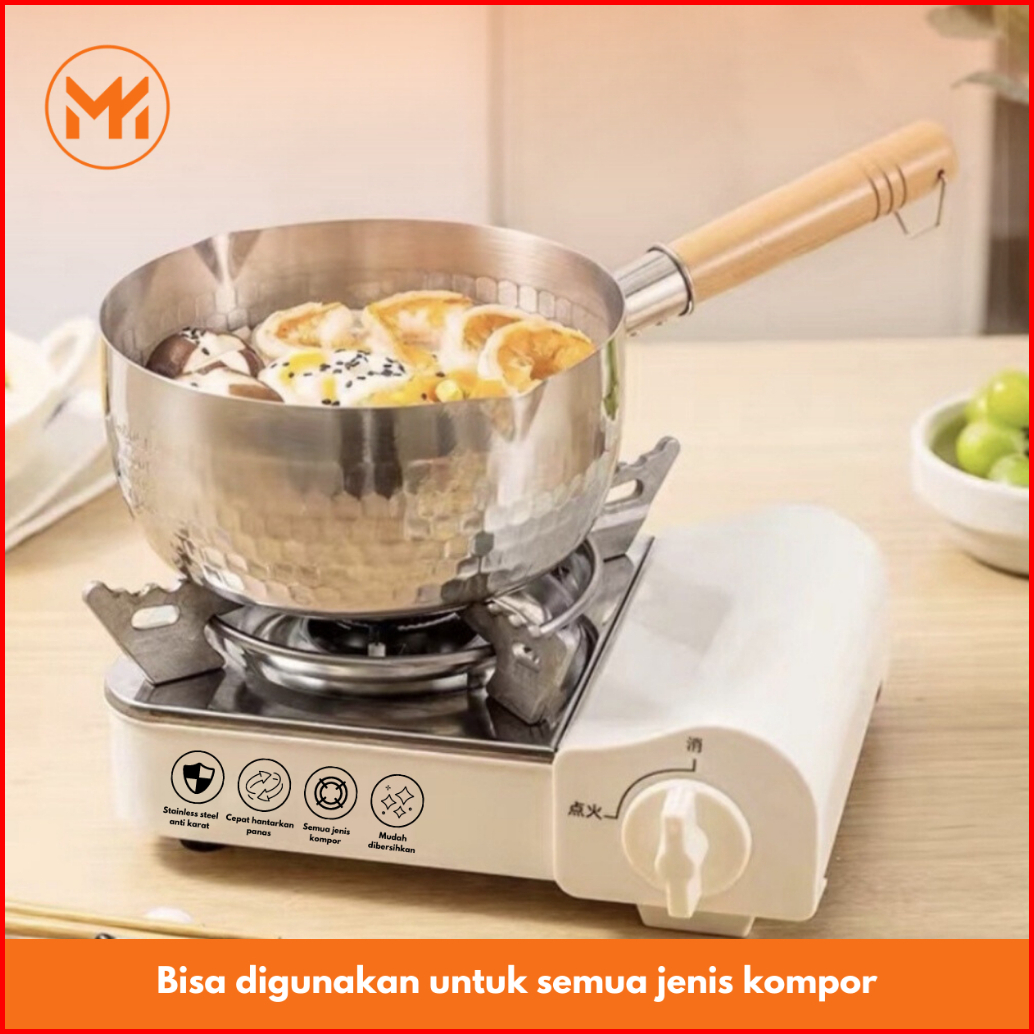Mm - A022 - Panci Susu Ukuran 22 20 18 Cm Panci Mie Stainless Steel Gagang Kayu Jamin Tebal - Warna Panci Rebus Panci Su