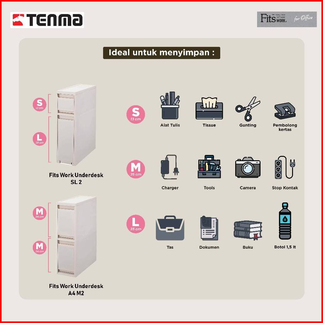 Tenma Rak Susun Serbaguna Japan Quality Lemari Plastik 2 Susun Lebar 17cm Fitswork Underdesk