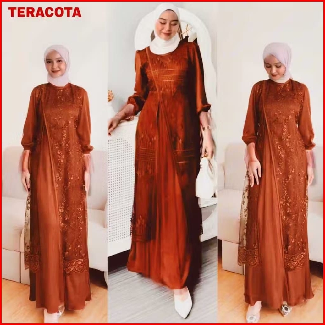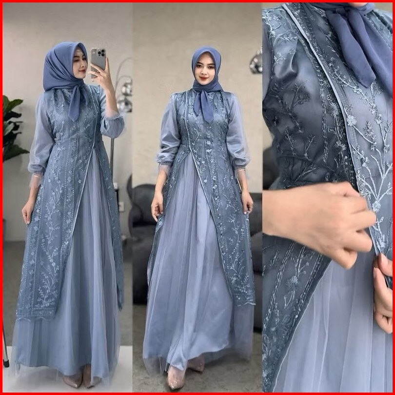 Paula Dress Gamis Pesta Kondangan Gamis Burkat Lebaran 2025 Elegan Busui Velvet Mix Tille Garden