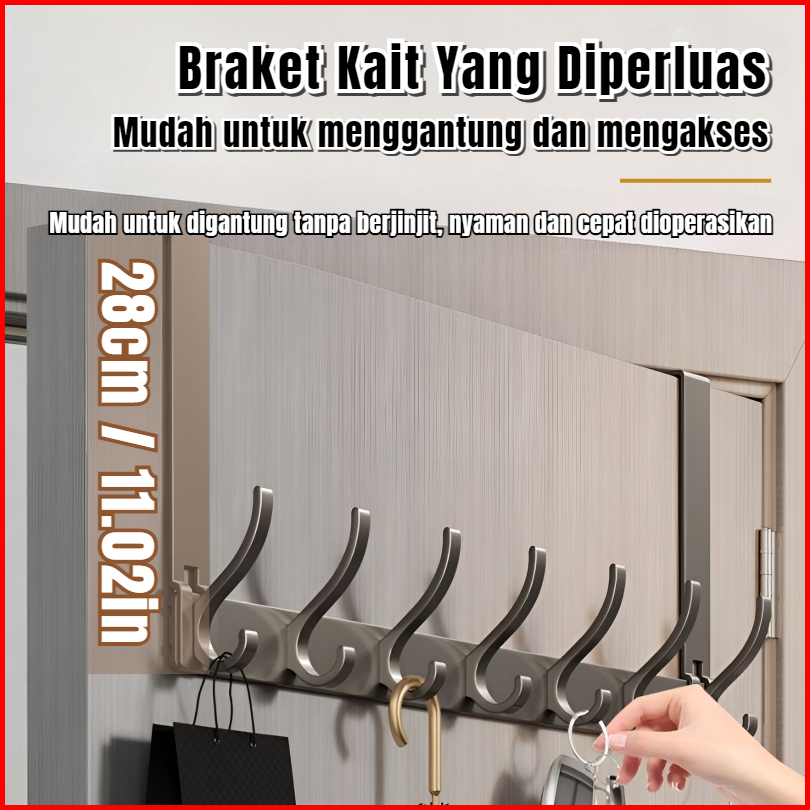 Gantungan Baju Pintu Alumunium Rak Tanpa Paku Kuat Dinding Besar Tebal Premium Gantungan Kamar Tidur Kamar Mandi Door Ho