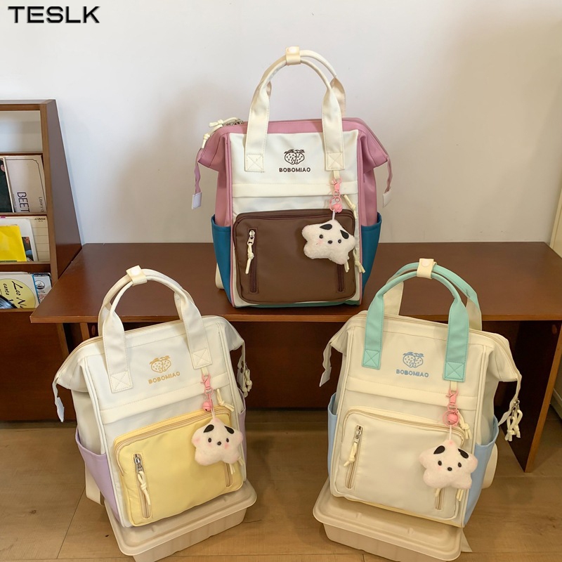 TESLK Tas sekolah pelajar Korea tahan air ransel wanita berkapasitas besar