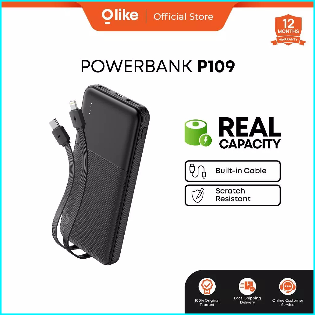Olike Power Bank P109 Powerbank 10000mah Built Kabel Type C Lightning Garansi Original Resmi