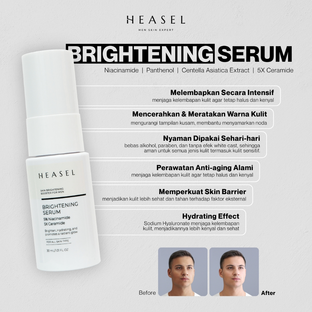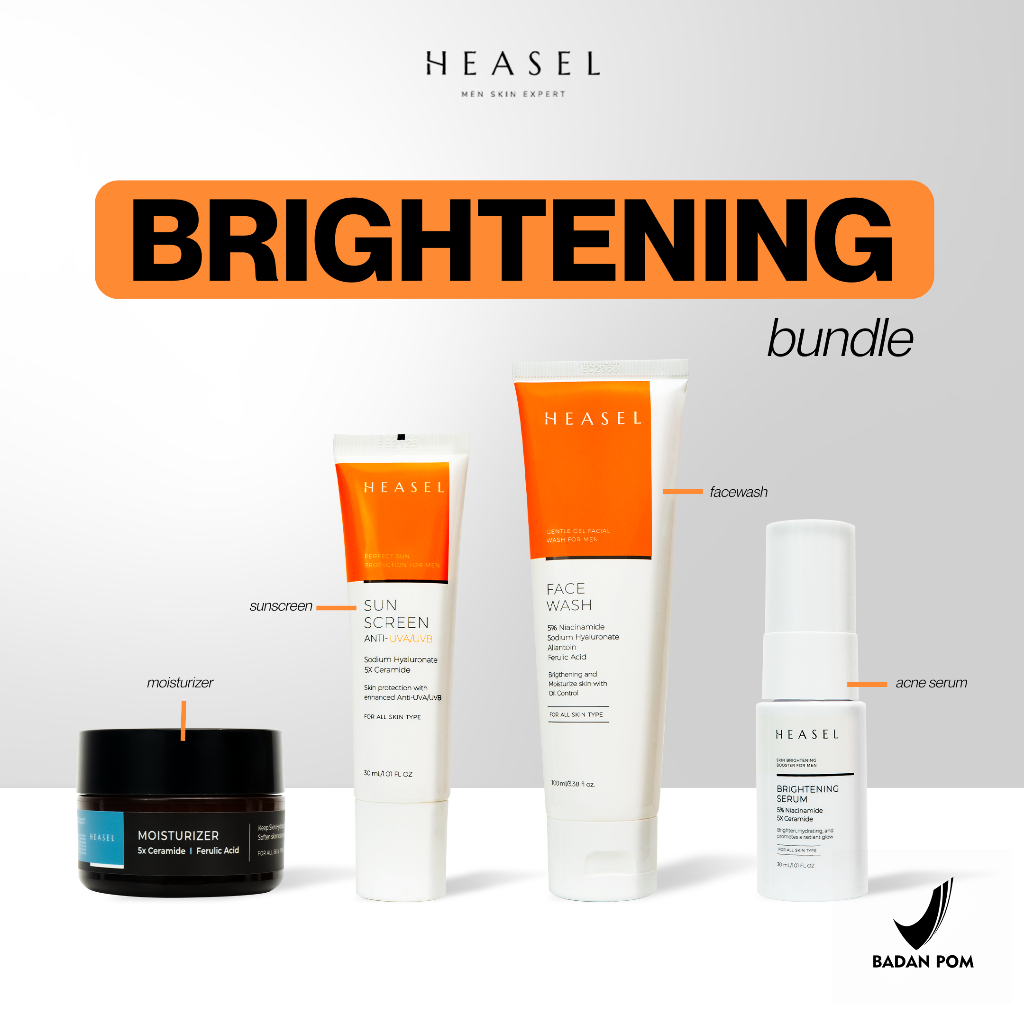 SKINCARE PRIA HEASEL PAKET BRIGHTENING DAN ANTI ACNE SET 4 PCS MENCERAHKAN, MELEMBAPKAN, BEBAS JERAWAT DAN FLEK HITAM