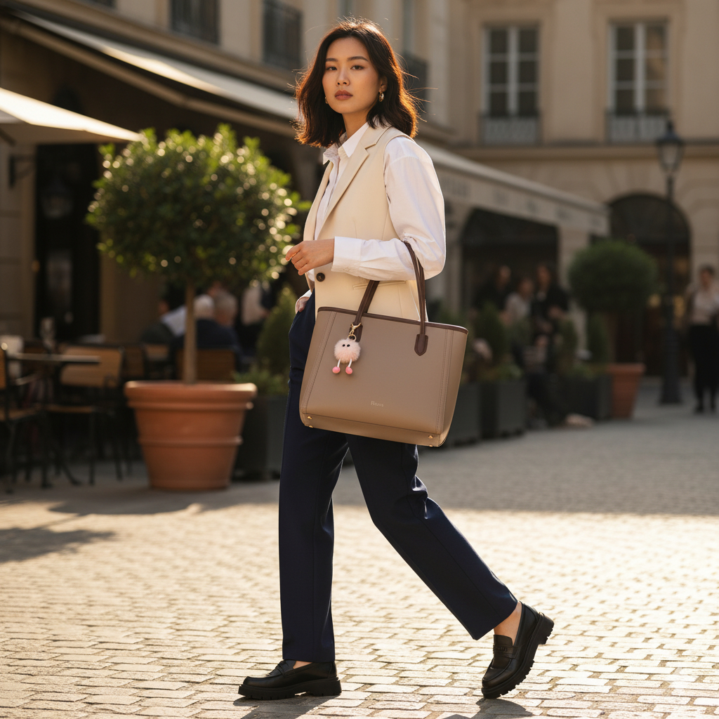 Fiora Totebag Wanita Tas Bahu Kulit Korean Style Kantor Shoulder Bag Elegan Kuliah Laptop