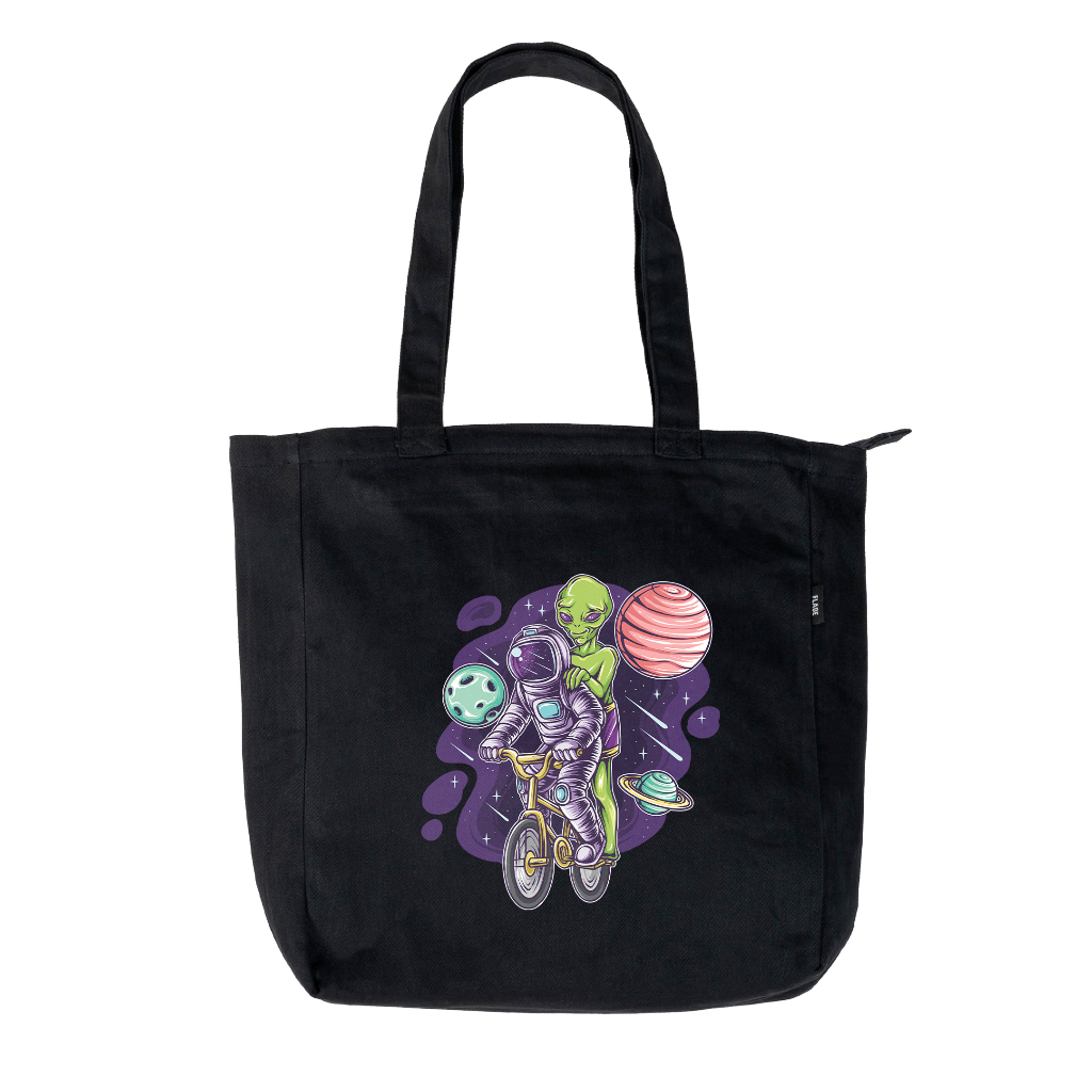 Flade Studios Totebag Kanvas Hitam Resleting - Tas Kuliah Pria Wanita - Astronaut Series