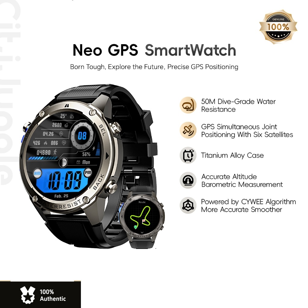 Smartwatch CitiJungle NeoGPS(DM56) GPS Frekuensi Ganda Akurat | Layar AMOLED 1.43 Tahan Air 5ATM