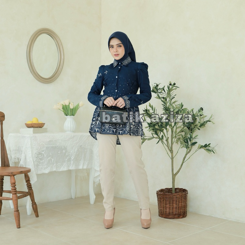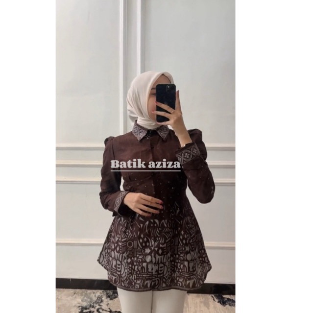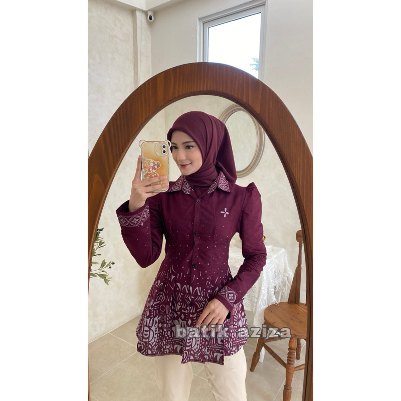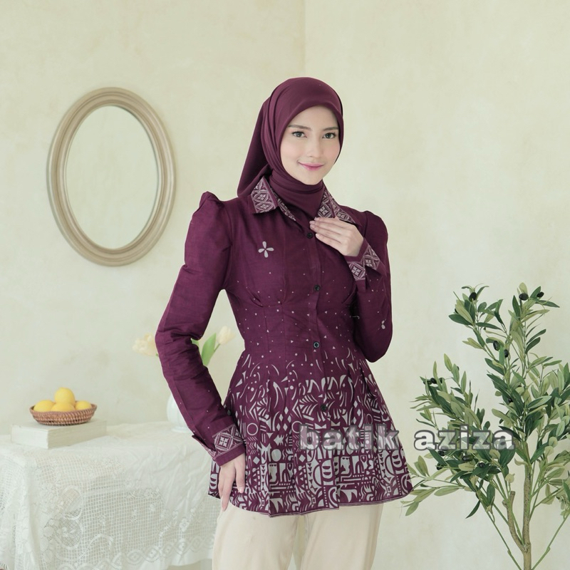Atasan Batik Modern Batik Kerja Wanita Warna Burgundy Mahogany Blus Maheswari By Batik Aziza
