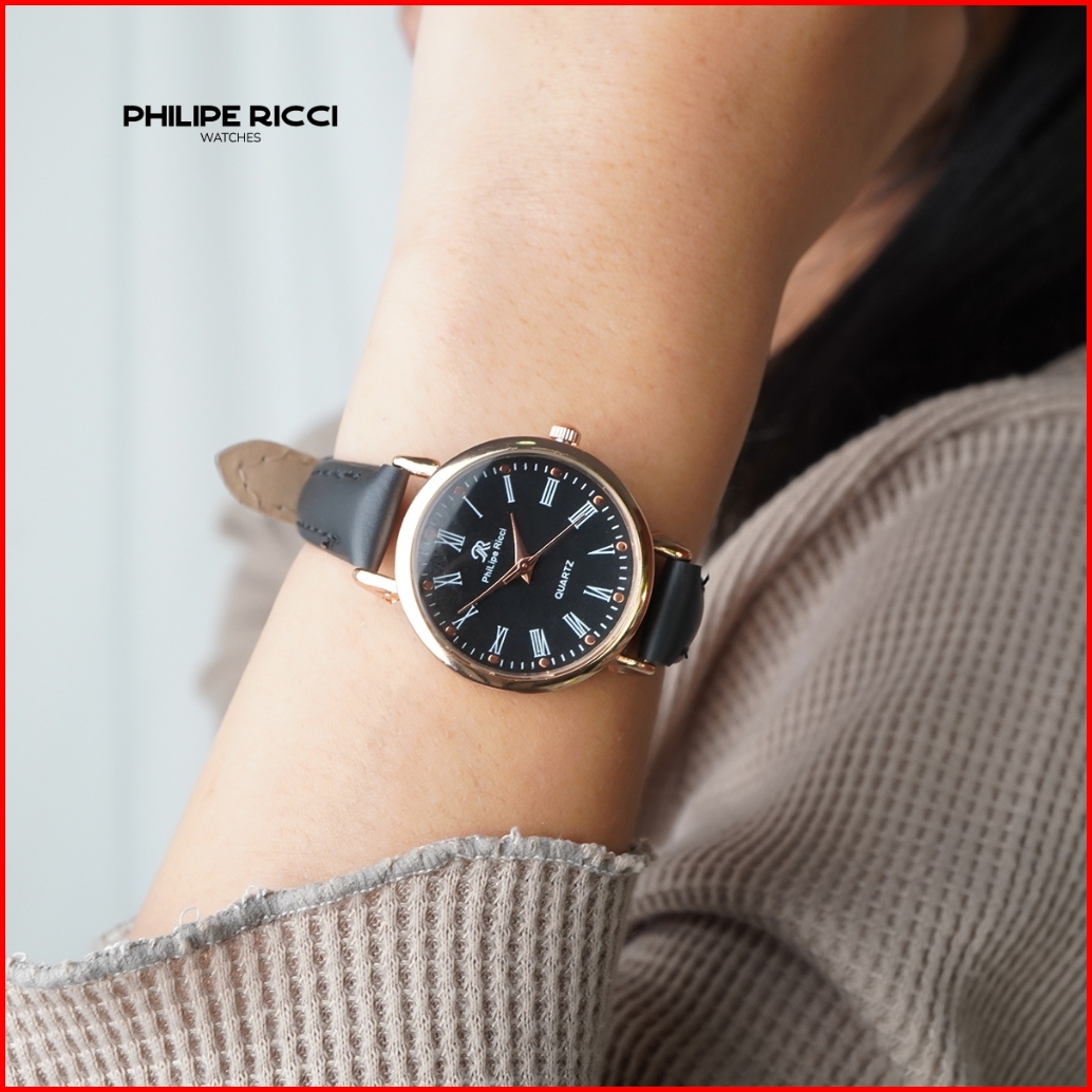 Philipe Ricci Jam Tangan Wanita Kulit Hitam Bulat Kecil Terbaru Original 6989 Women Watches Free Box