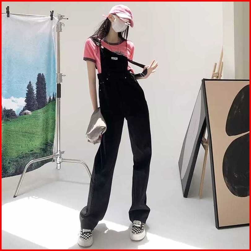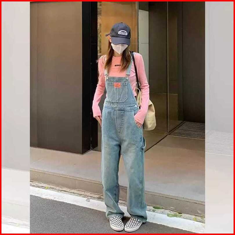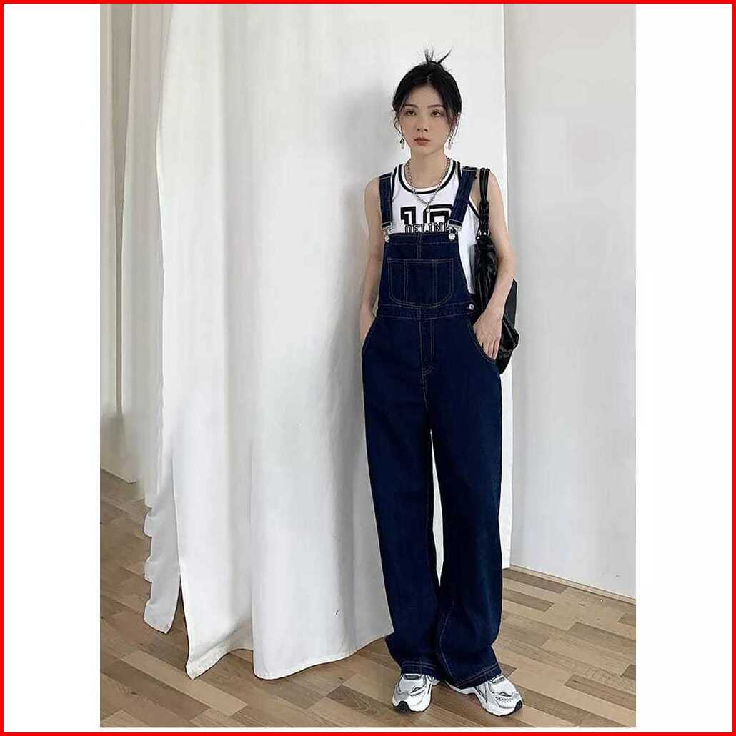 Murah Lebay - Overall Denim Panjang Jumpsuit Celana Panjang Jumpsuit Wanita Fashion Simple Lucu Jumpsuit Longgar Versi K