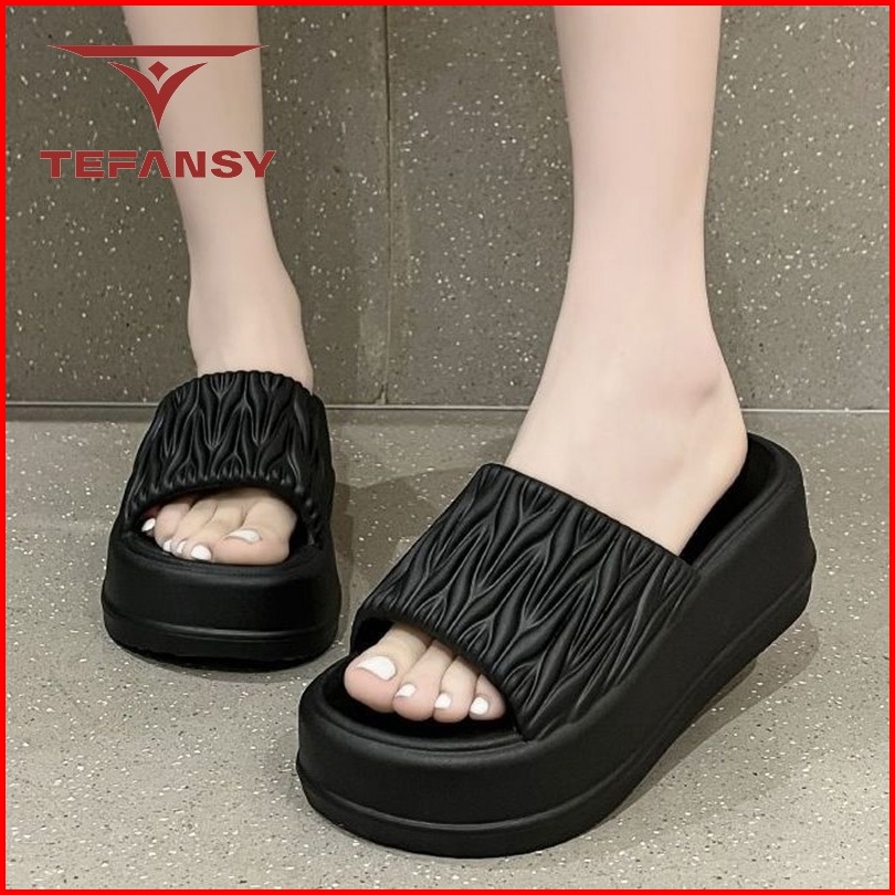 Tefansy Sandal Jelly Wanita Wedges Kekinian Tebal Sandal Selop Eva Murah Dewasa Premium Anti Slip