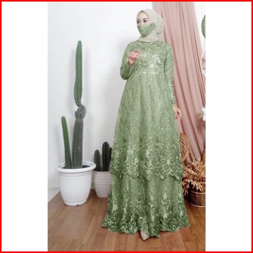 Termurah Gamis Malaysia Amira Dress Brukat Premium 2 Tingkat Baju Remaja Dewasa Wanita Pesta Kondangan Jumbo Kekinian Te