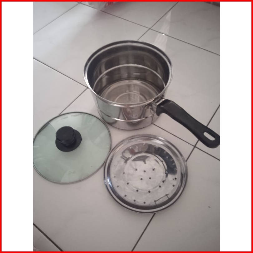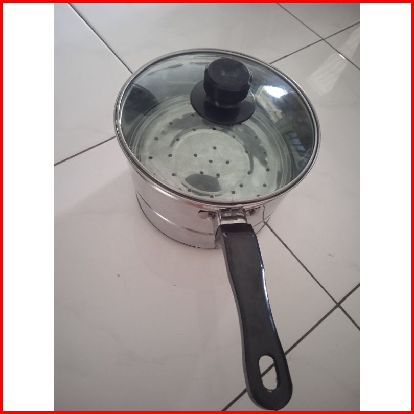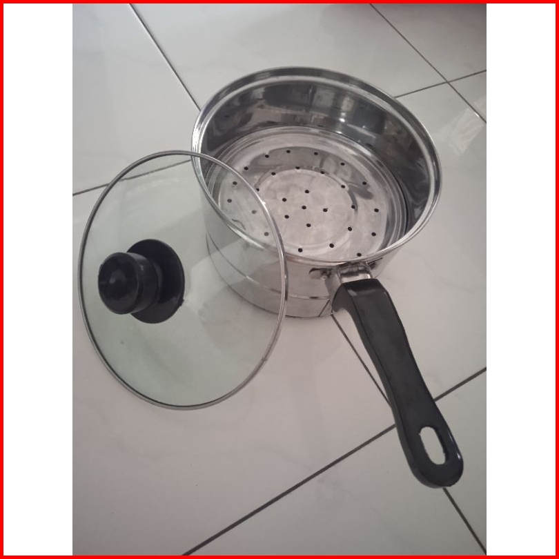 Panci Staimer Tutup Kaca 16 Cm Kukusan Stainless