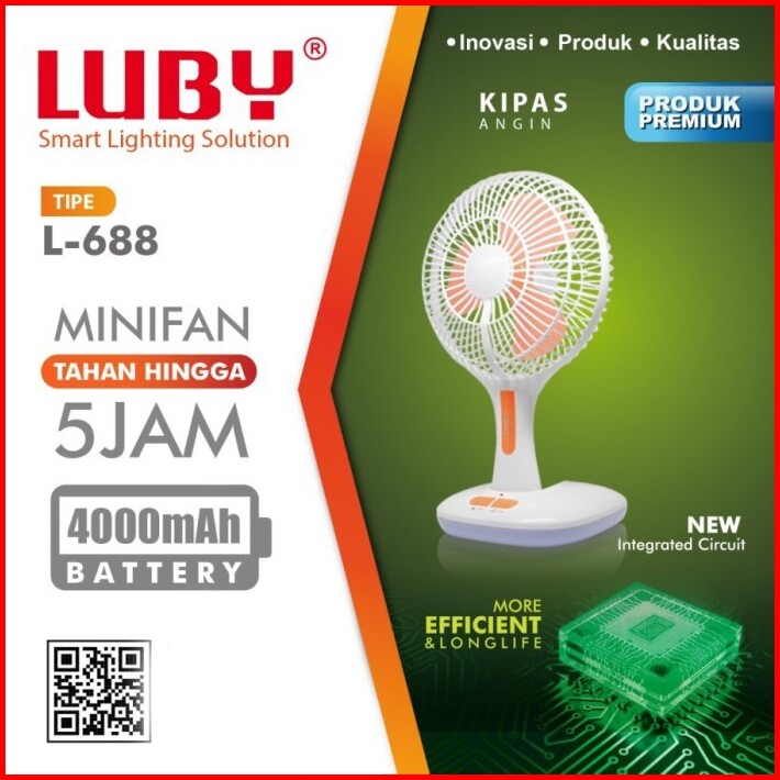 Kipas Lampu Emergency Luby L688 Cas Ulang 6inch L-688