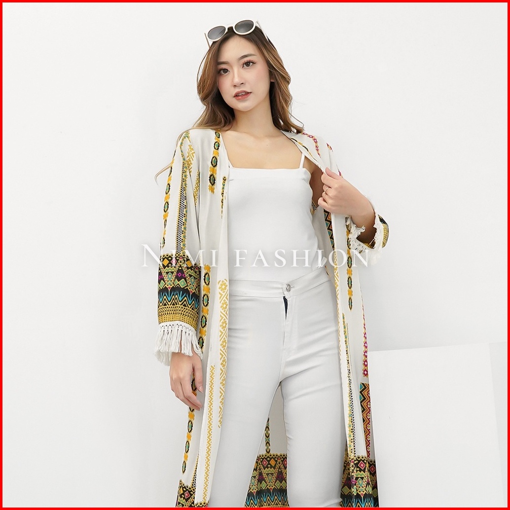 Nimi - Outers Bohemian Panjang Cardigan Etnik Panjang Fringe