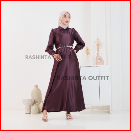 Brina Gamis Kondangan Dress Maxi Satin Premium Wanita Hijab Gaun Lamaran Bridesmaid Kekinian