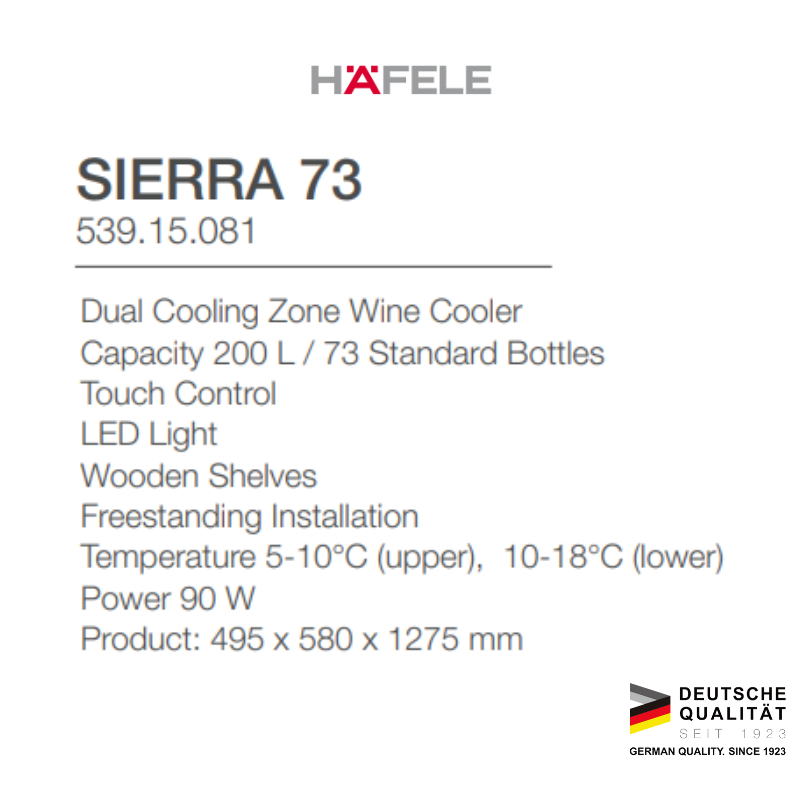 Hafele SierraStanding Black 73 - Kulkas Chiller Dual Zone Pendingin