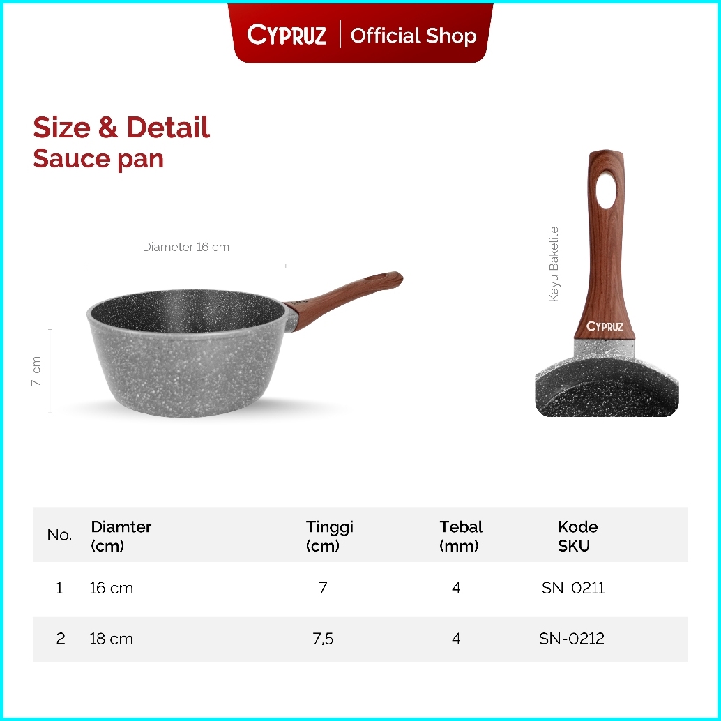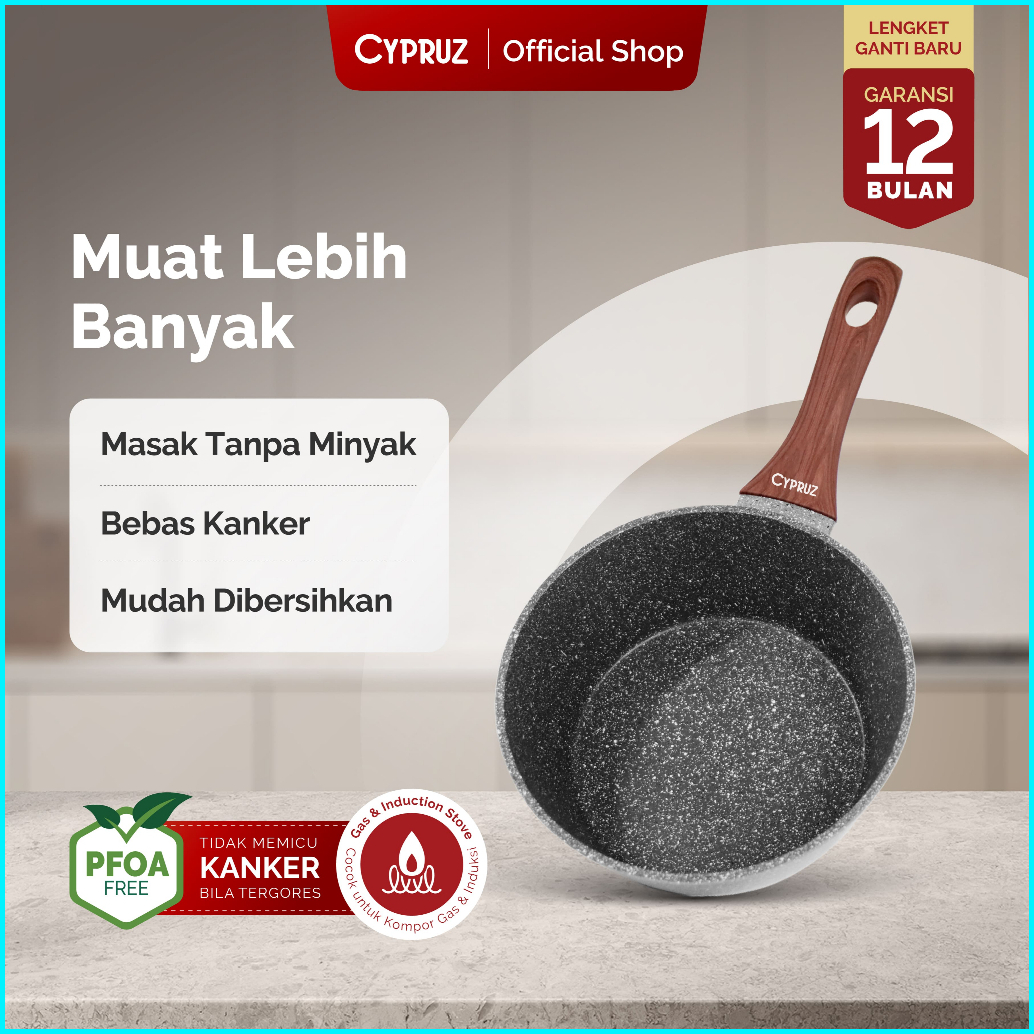 Cypruz Panci Susu Anti Lengket Sauce Pan Induksi Marble 16 Dan 18 Cm