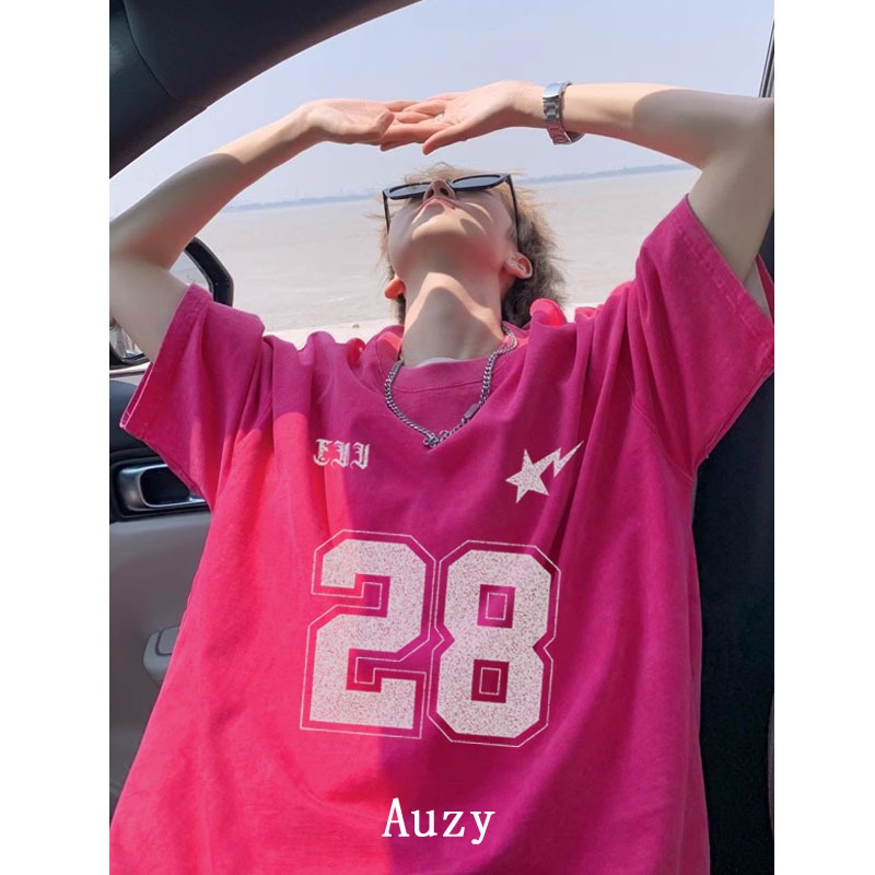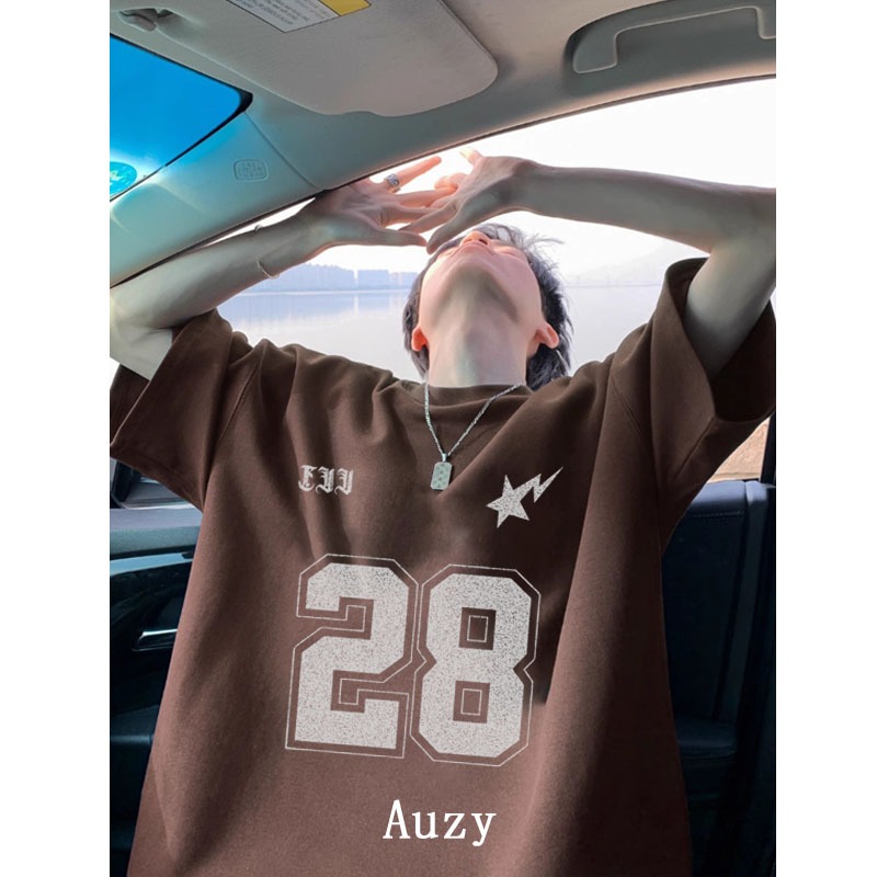 AUZY No. 28 Jersey Retro Amerika olahraga kaos pria wanita atasan Lengan Pendek T-shirt skena baju oversize t shirt distro original 100 PERSEN
