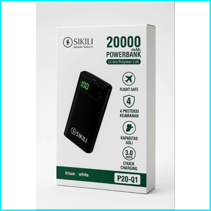 Sikili Power Bank P20q 20000 Mah 22.5w Qc3.0 Original 30-day Shop Guarantee