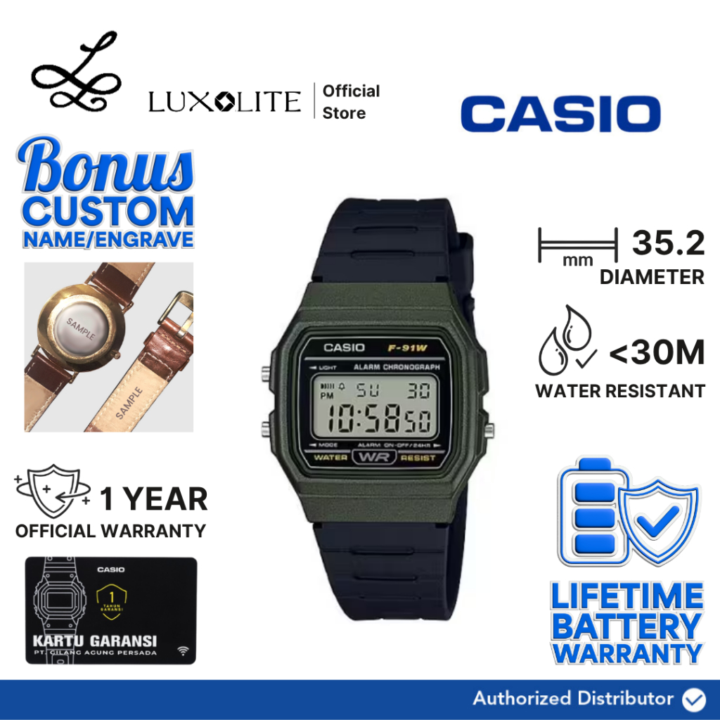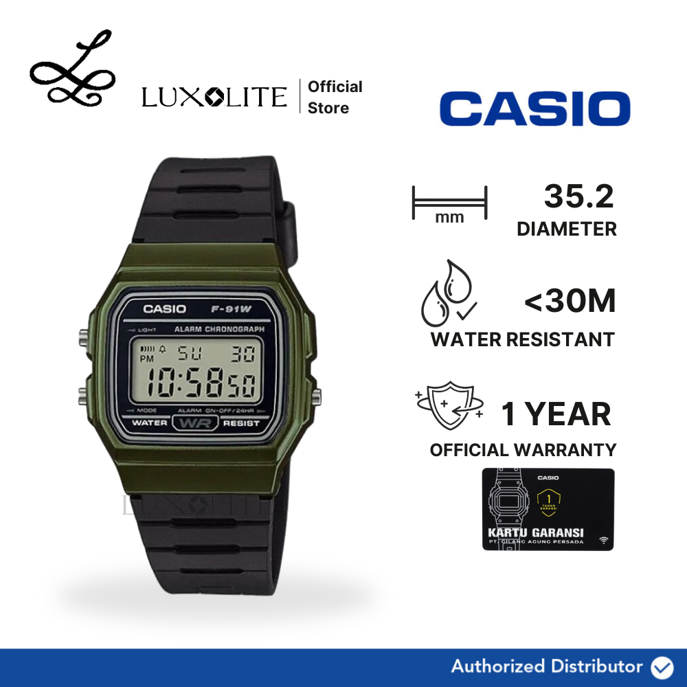 [Luxolite] Casio Jam Tangan Unisex Digital F-91Wm-3Adf/F-91Wm-3A/F-91Wm-3 Army Dial Resin Strap F 91 F 91Wm F91W F91