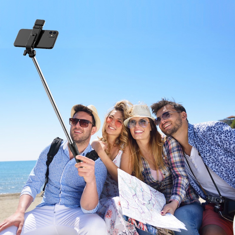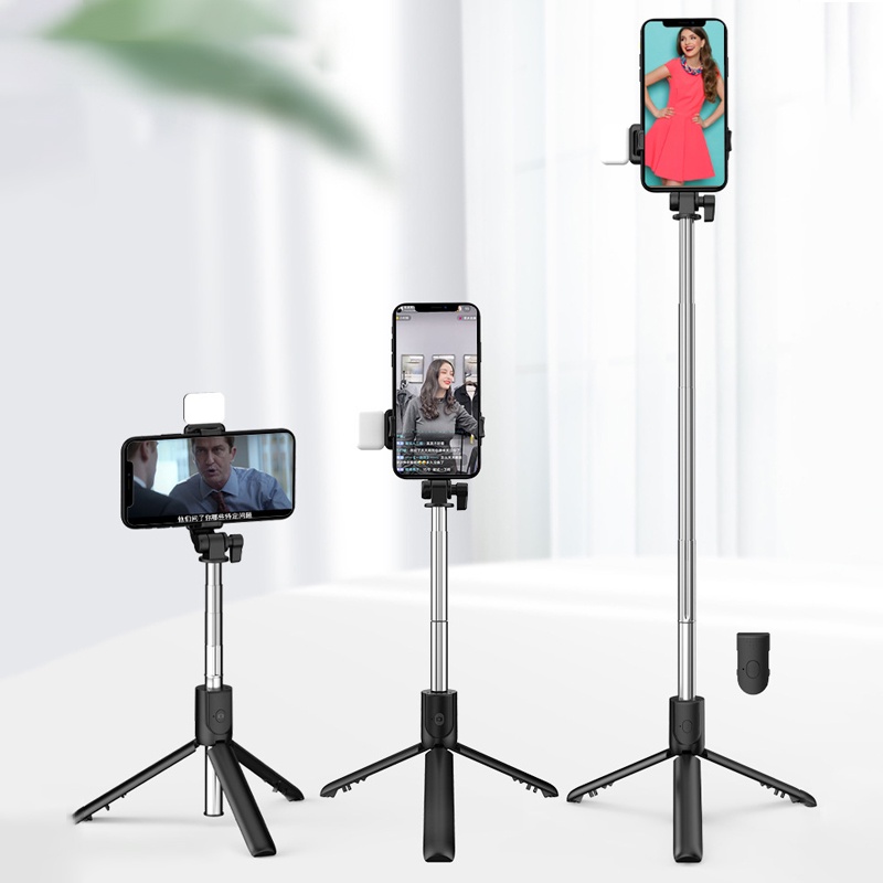 BLUETOOTH SELFIE STICK PORTABEL LED LAMPU R1S TRIPOD HANDPHONE VLOG TONGSIS TRIPOD BLUETOOTH