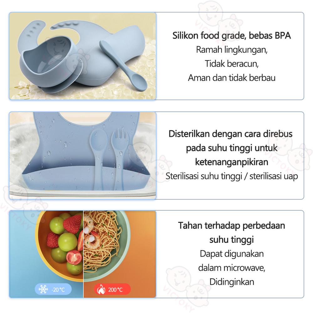 VICTOKY 5PCS Peralatan Makan Mpasi Bayi Set / Celemek Makan Bayi Silicone / Mangkok Sendok Bayi / Training Cup Anak
