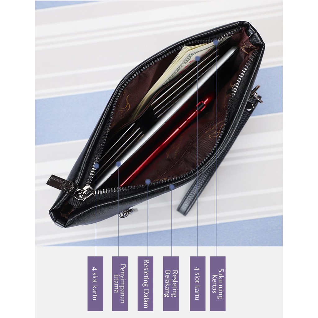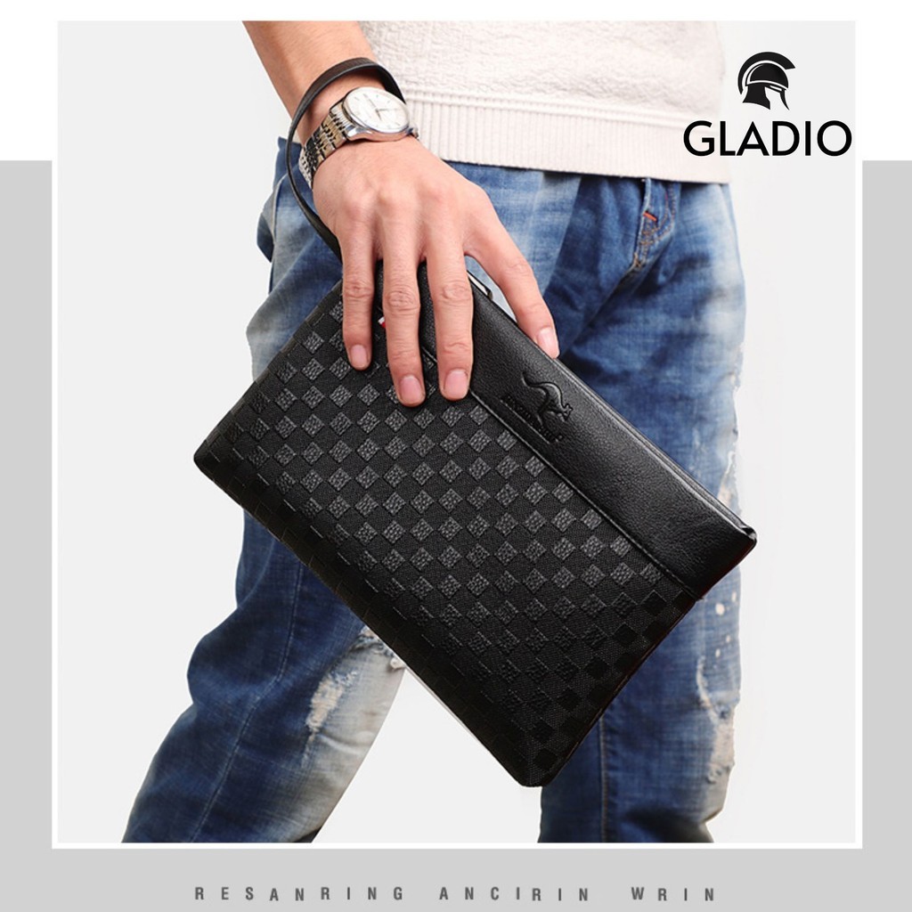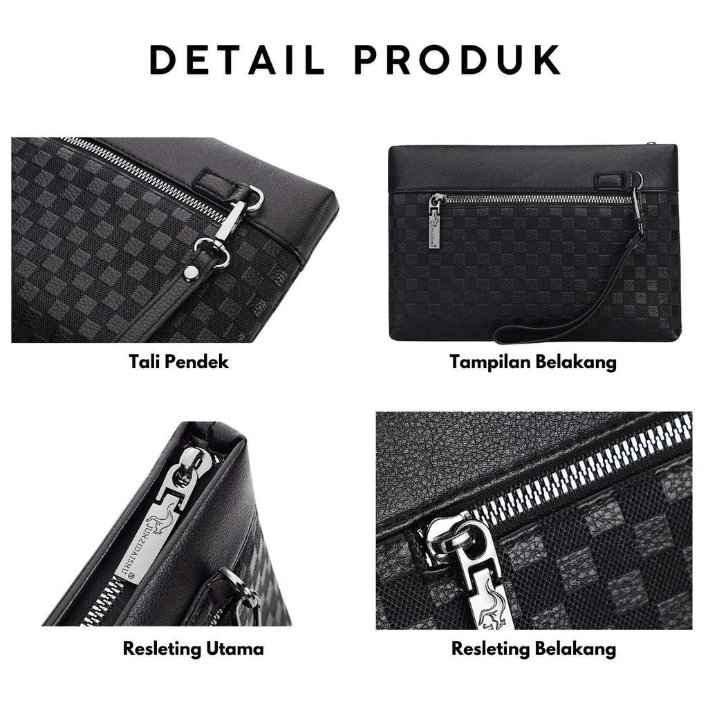 Gladio Tas Pria Clutch Velda Hitam Hand Bag Kulit Pria Motif Keren Premium Mewah Elegan Gld014B5