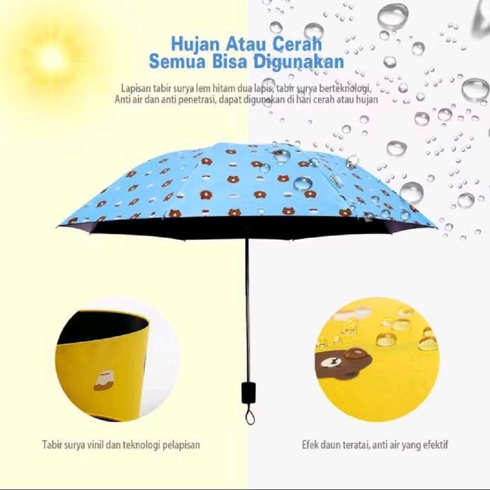 Payung Lipat Motif Bear UV 3D Anti Sinar Radiasi Panas Praktis Mudah Dibawa Hadiah Lucu - Bear Putih