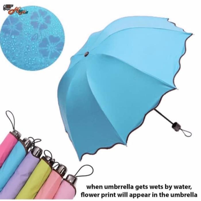 payung lipat magic 3D anti UV payung ajaib motif Bunga Anti Karat Gagang - hijau
