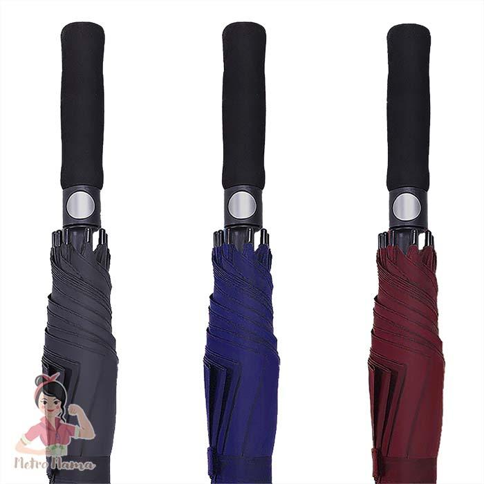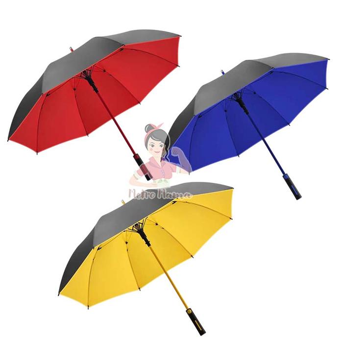 Payung Golf Jumbo Otomatis Rangka Fiber Kain Nylon Polos UV - Muat 2-3 Orang Handle Busa EVA - Hitam