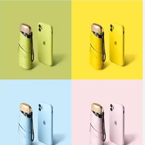 Payung Lipat 5 Mini 6 jari kain Polyester - Anti UV 50+ - pink