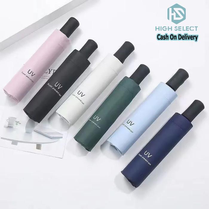 HIGH SELECT Payung Dua Fungsi Lipat Tiga Tebal Hitam AntiUV Pelindung Sinar Matahari Payung Matahari - biru gelap