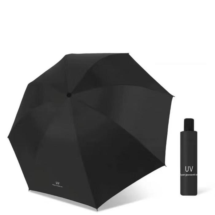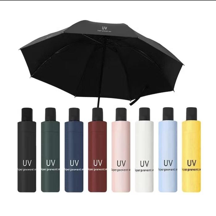 (FREE BUBBLE WRAP)Payung Lipat UV Protection Ringan Tahan Karat Tahan Air Kuat Manual Gagang - HITAM