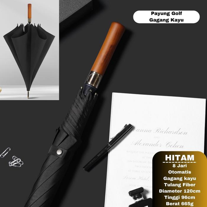 Payung Golf Jumbo Otomatis/Payung Golf Jumbo Buka Tutup Otomatis Anti UV Protection Premium Quality - Hitam G.Kayu