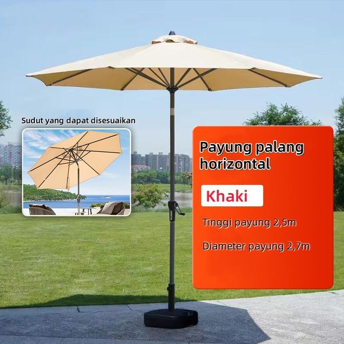 【WTHB】Taman payung hotel teras payung pantai pasar payung luar r-an Payung Pantai Luar R-an 270cm Kain Anti-UV - Khaki