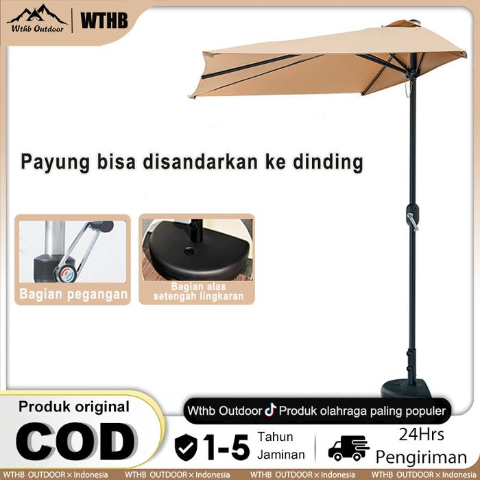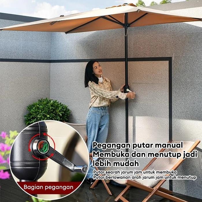 【WTHB】Payung Teduh Setengah Tembok untuk Kafe Outdoor Taman dan Balkon Dapat Diatur & Tangan Engkol Cafe - Khaki