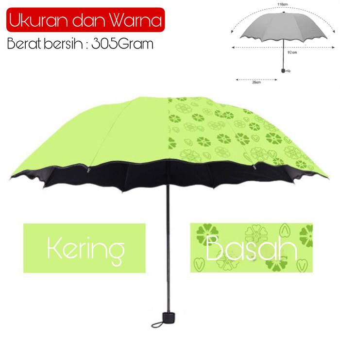 Payung Lipat 3D Ajaib Motif Ketika Basah Hujan Besi Anti UV Kain 2 Lapis 91cm x 26cm Sarung Termasuk - 3D HIJAU