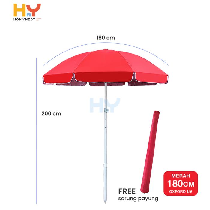 HOMYNEST Payung Untuk Jualan Ukuran 180 CM Bahan Kain Oxford Tebal Rangka Kanopi Besi Berkualitas Anti UV - Merah
