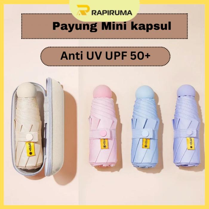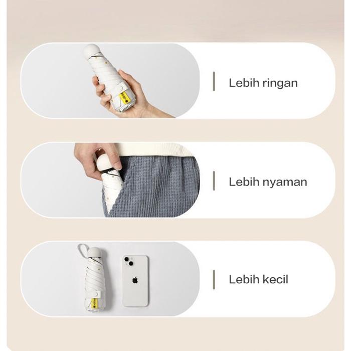 Payung Lipat Mini Warna Anti UV / Payung Mini Kapsul Cute / Umbrella Mini Souvenir Hampers Gift / Payung Kapsul - HITAM
