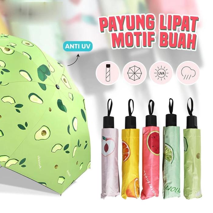 Payung Lipat Motif Buah Semangka Lemon Alpukat Jeruk Buah Peach Payung Manual Payung Anti UV - Peach