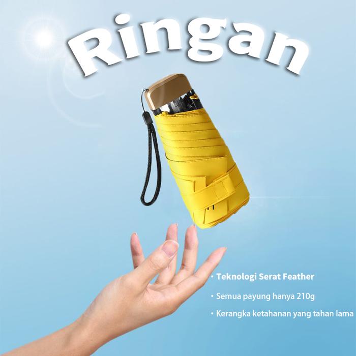 payung payung matahari payung saku parasol matahari super ringan kompak portabel mini payung dua guna - Hitam