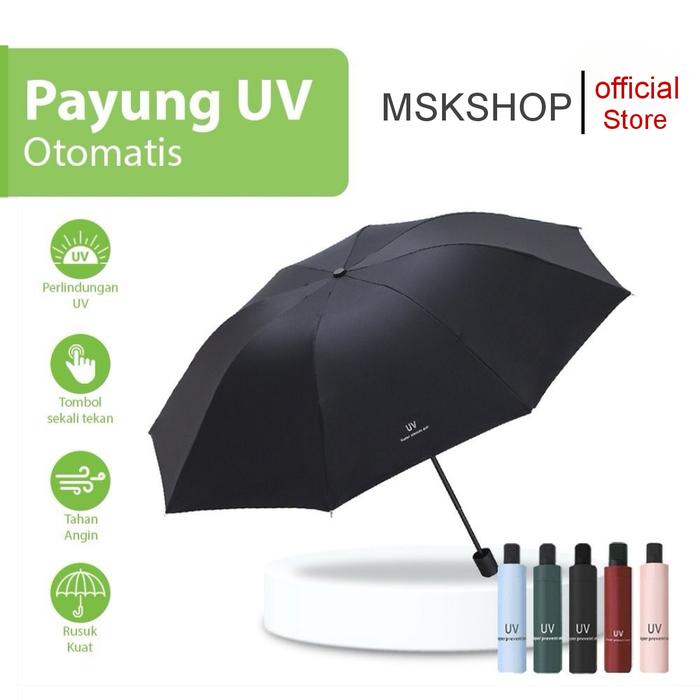 Payung Lipat Anti UV / Payung Buka Tutup Anti UV / payung matahari hujan atau cerah - Pink UV