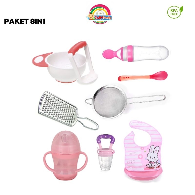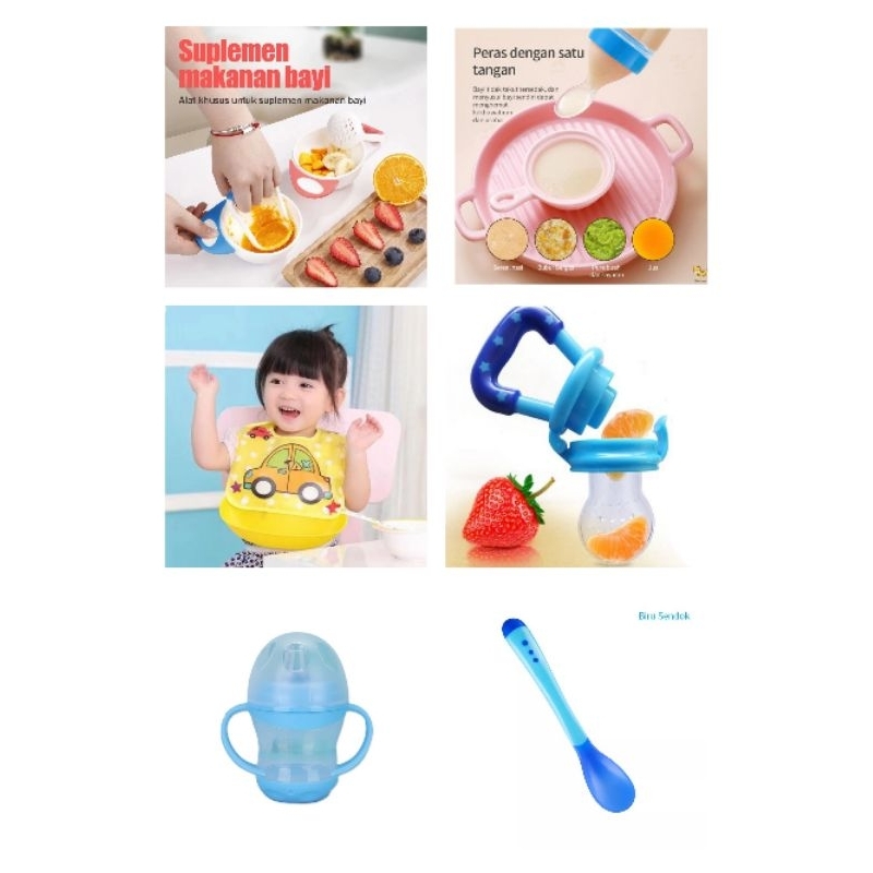 DMP-all Paket Alat MPASI Set Alat Makan Mangkok Sendok Bayi Empeng Buah Botol Minum Celemek Makan Saringan Parutan Baby