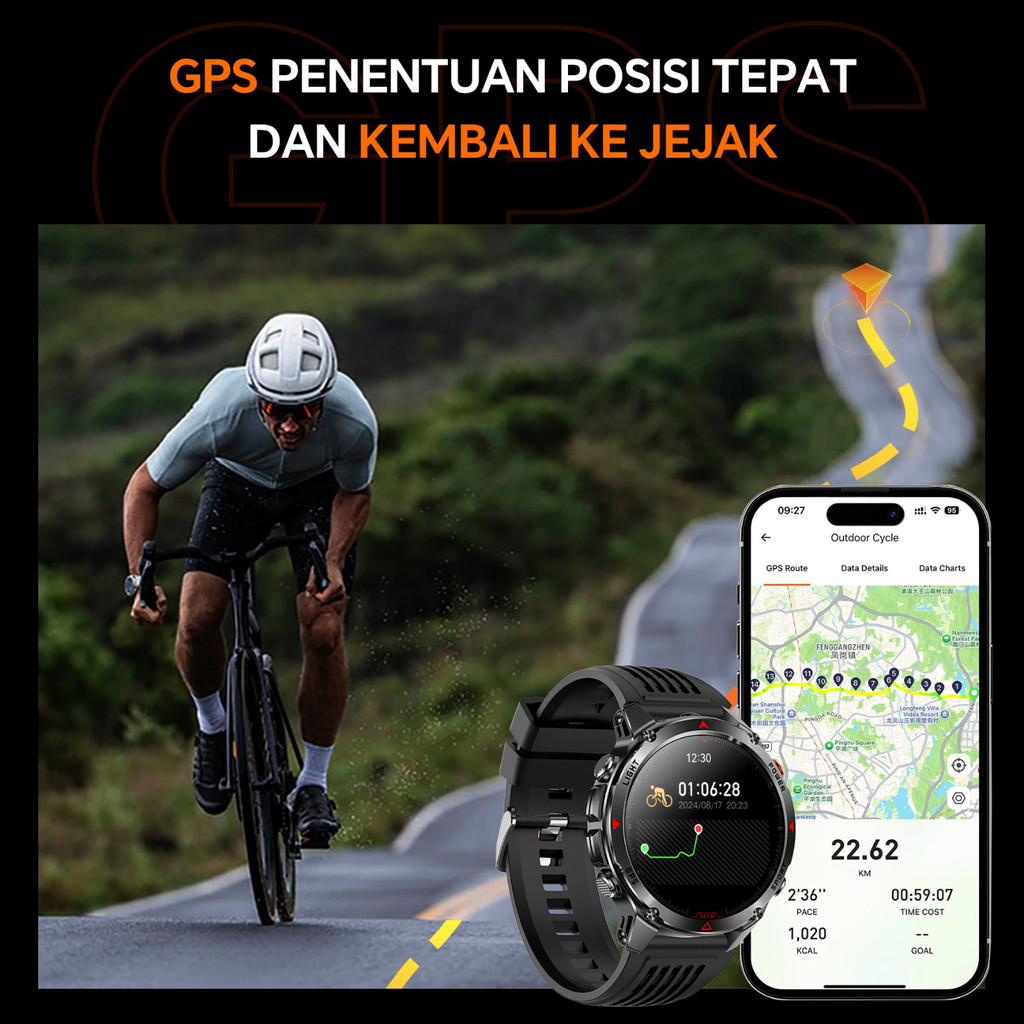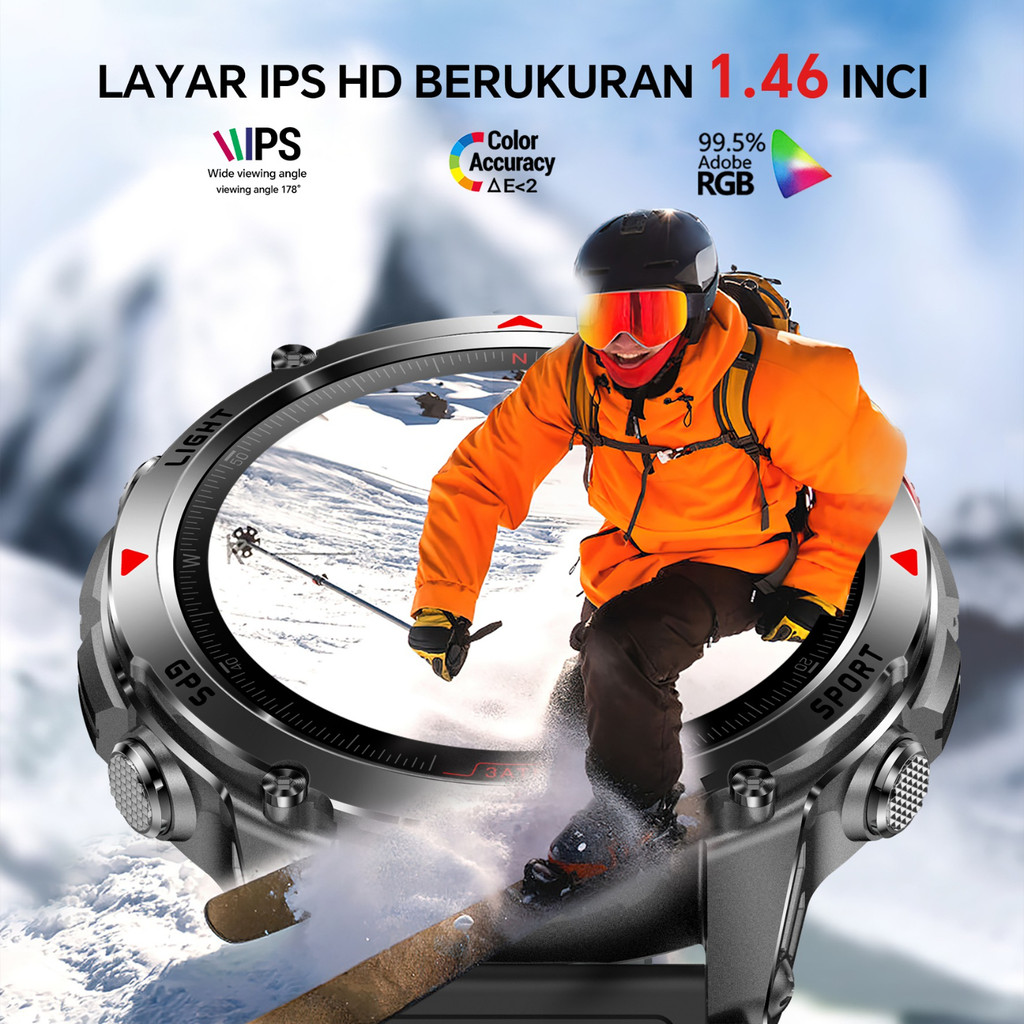 Smartwatch Morein Rock 2 GPS - Layar HD 1.46 GPS + Kompas Altimeter + Barometer Tahan Air 3ATM