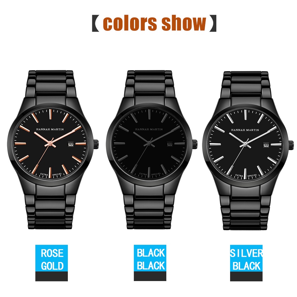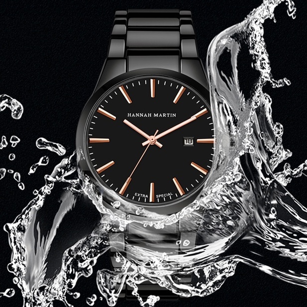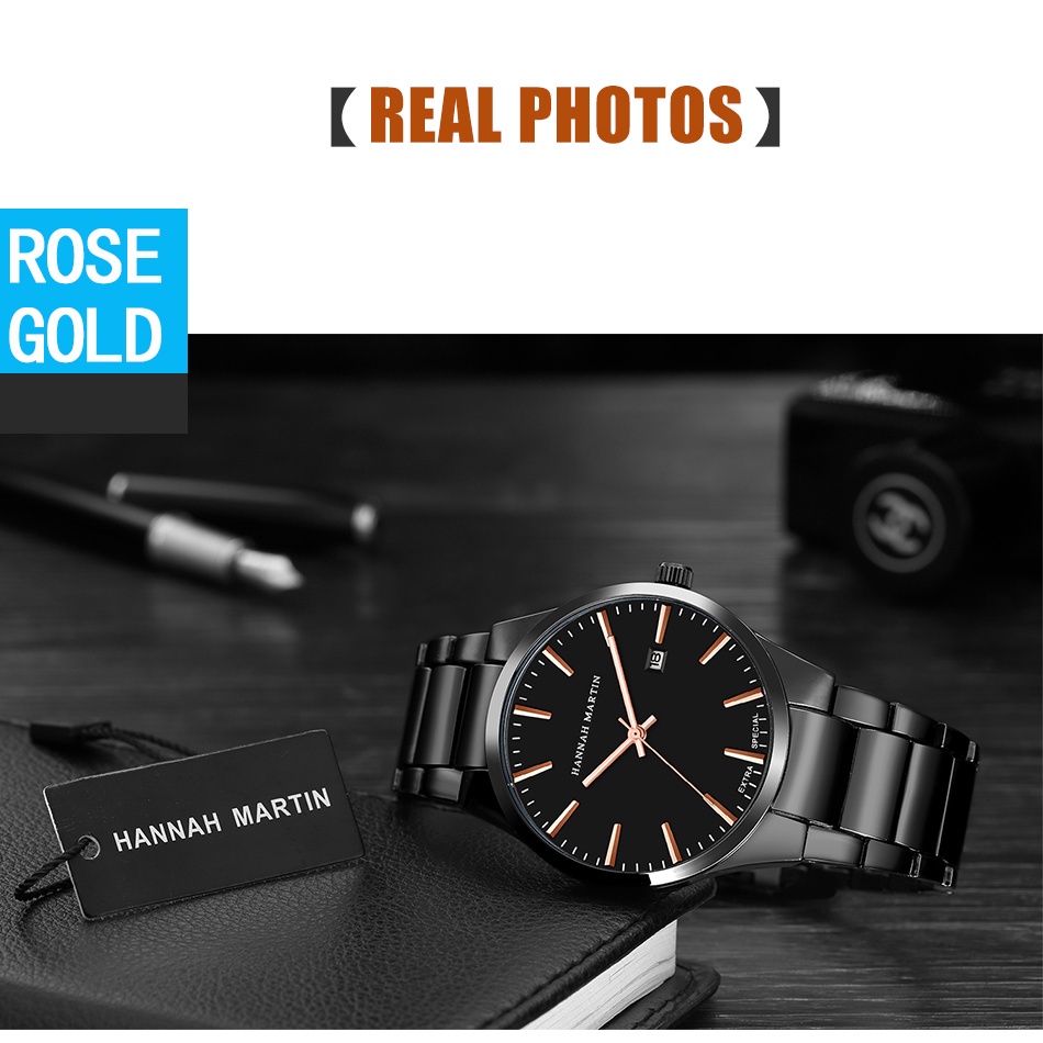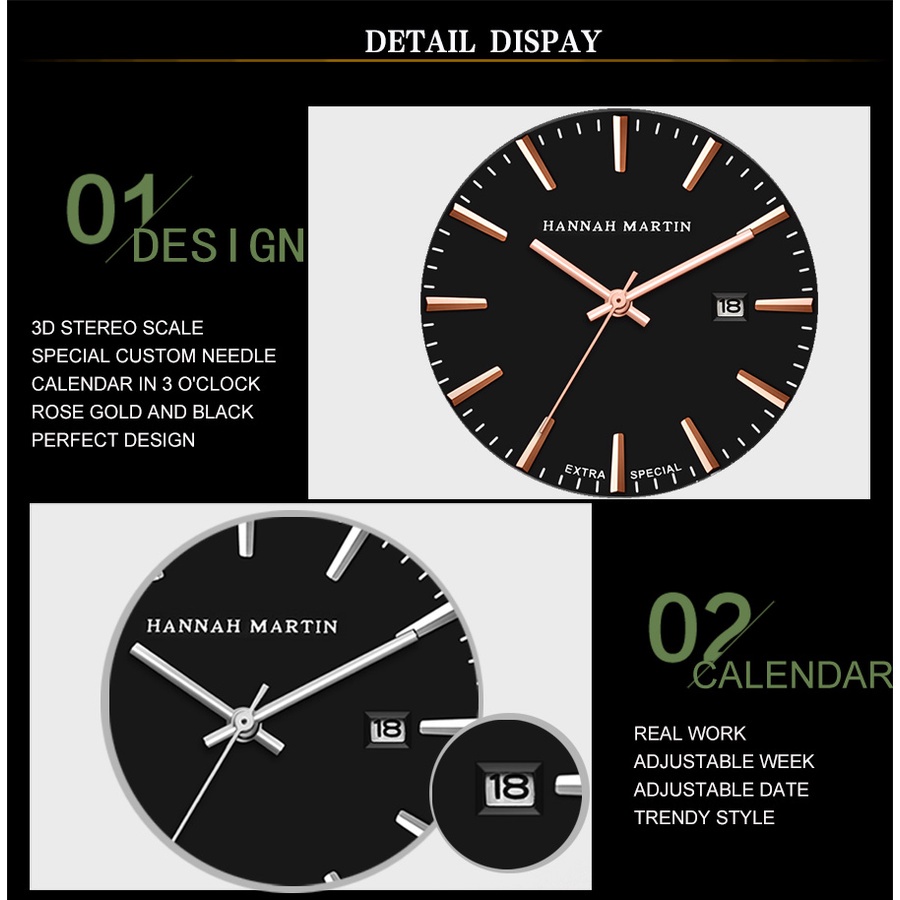 Hannah Martin Jam Tangan Pria 100 PERSEN Original Business Tanggal Analog Stainless Steel 1756