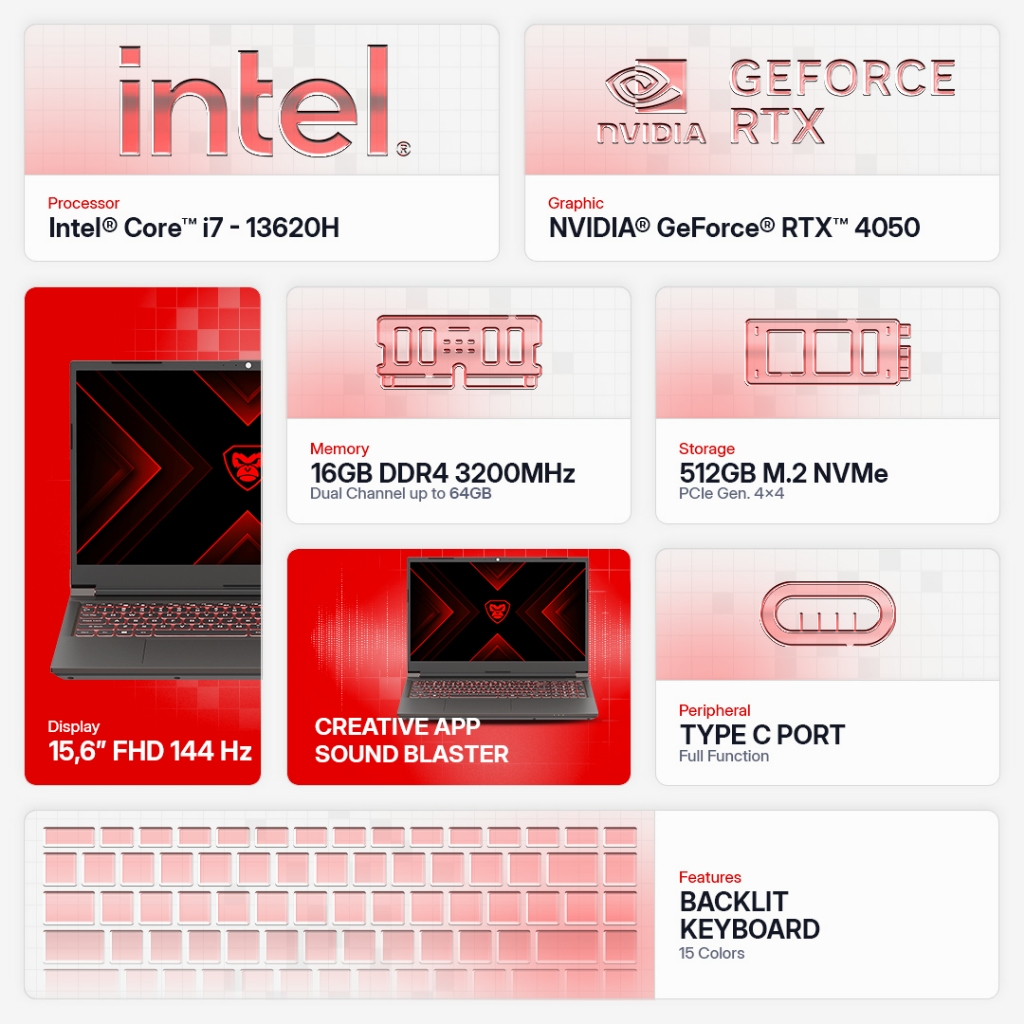 Axioo Laptop Gaming Pongo 750 Core i7-13620H/16GB/512GB/RTX 4050/FHD IPS 144Hz - Windows 11